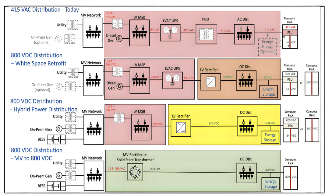 在AI驱动的数据中心时代,单个GPU的功耗已达kW级,数据中心机柜功率不得不向MW级跃升,传统供电方案在效率、体积和响应速度等方面遭遇物理极限,已难以满足MW级机柜的功率需求。